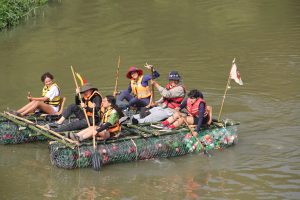 A jornada começou meses antes, com a campanha de arrecadação de garrafas PET, utilizadas na construção das embarcações. A ação fez parte do Mutirão Nacional Escoteiro de Ação Comunitária (MutEco) e envolveu famílias, escolas, igrejas, salões de festas e feiras livres. Foram coletados também sacos de cebola, sombrite e telas que, após o evento, foram doados à entidade Amigo do Lixo de Guaratinguetá, resultando no envio de dois caminhões de materiais recicláveis. Segundo o diretor da instituição, a doação beneficiará 20 famílias cadastradas.