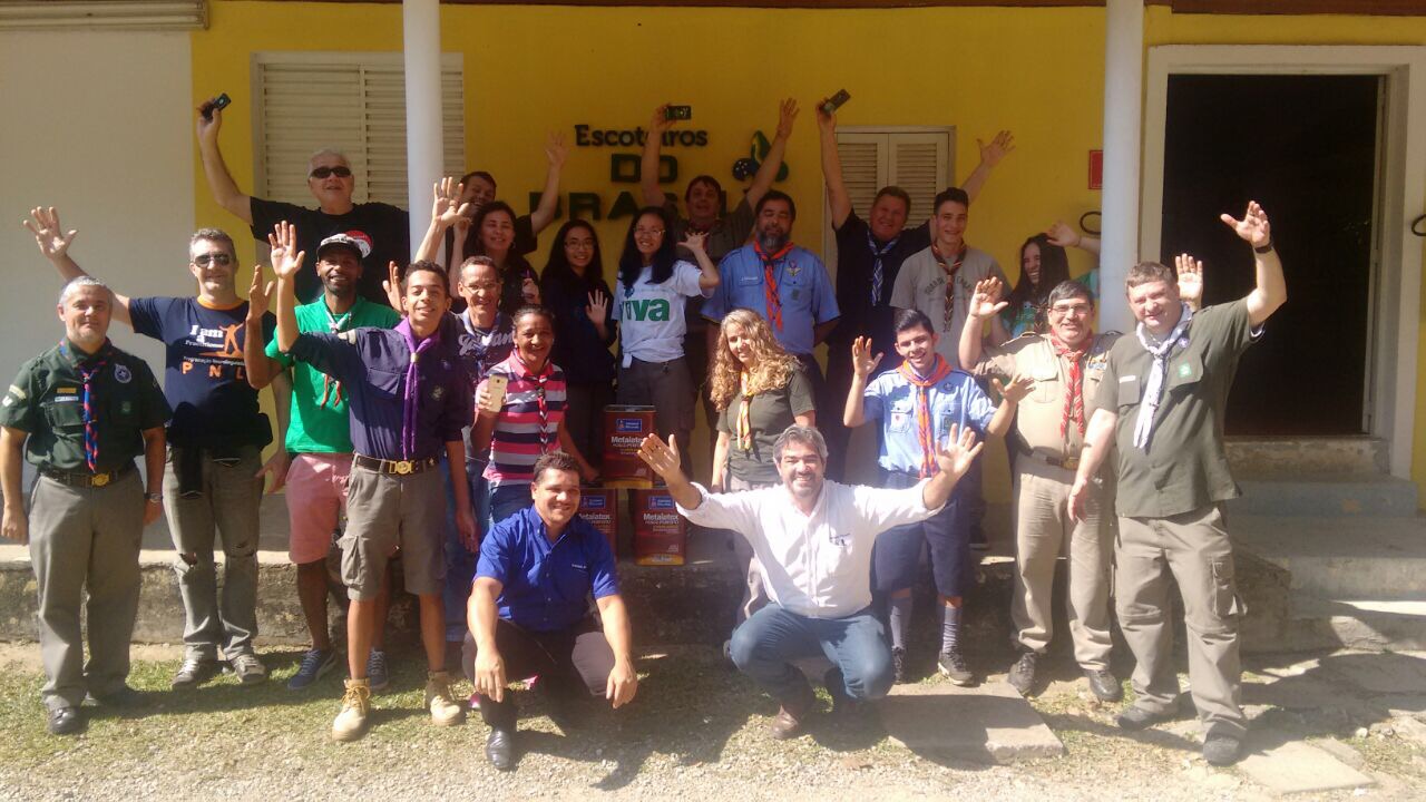 O Centro Escoteiro Jaraguá, em parceria com a Sherwin-Willians, reuniu 17 adultos voluntários e 6 jovens para participarem do Projeto Academia do Pintor no dia 22 de julho.