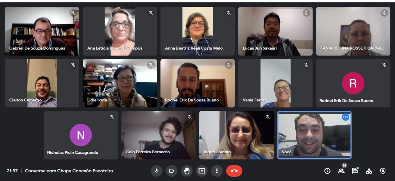 A convite da diretoria regional, a chapa concorrente a gestão 2022/2025 – Conexão Escoteira, esteve em reunião virtual com a diretoria eleita, para uma conversa com o objetivo de identificar pontos de alinhamento das propostas para um aproveitamento dos projetos pela gestão atual.