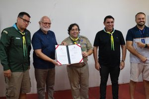 Logo em seguida, com a presença do Secretário Executivo da Justiça e Cidadania, Sr. Raul Christiano Sanchez, do Coordenador de Políticas para a Juventude, Sr. Juliano Borges e do Sr. Anderson Campos, representante da Deputada Federal Fabiana Bolsonaro (PL), foi assinado o protocolo de intenção entre o Governo de São Paulo e os Escoteiros do Brasil – Região São Paulo, que tem por objeto a conjugação de esforços e apoio mútuo entre as partes, com a finalidade de planejar e elaborar um plano de trabalho com vistas à celebração de acordo de cooperação que trate do fomento do voluntariado entre os jovens, com ênfase no desenvolvimento de protagonismo e liderança juvenil.