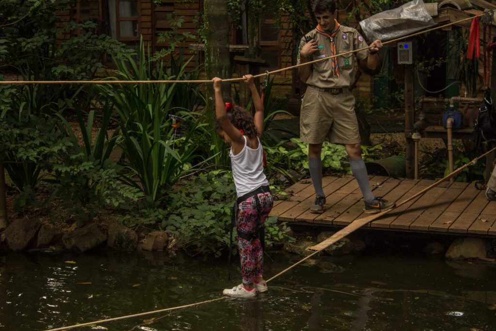Além disso, essa atividade foi a inauguração de uma “escalada de cordas”, planejada e instalada pelos escoteiros na Roca de Fogo Acampamentos, que foi grande parceira no projeto.