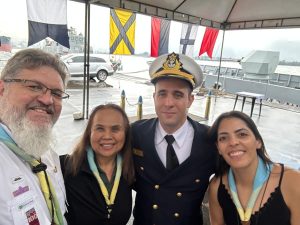 Fortificando ainda mais a parceria entre os Escoteiros e a Marinha do Brasil, dois membros da nossa Diretoria Regional compareceram à sessão solene que marcou a despedida do Capitão de Fragata, Carlos Eduardo Pereira de Souza, do cargo de comandante do Grupamento da Patrulha Naval do Sul – Sudeste da Capitania dos Portos de Santos, no dia 24 de julho em Santos. O Coordenador da Modalidade do Mar da Região São Paulo (Coremar), Maurício Maleski, e a Diretora Regional de Crescimento e Expansão, Maria Toshiko Yamawaki, acompanharam a transmissão do cargo do então comandante para o Capitão de Fragata Higor de Souza Alves.