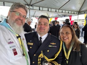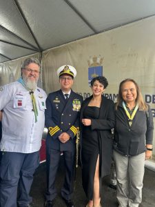 “Recebemos com muita alegria esse convite e fizemos questão de vir prestigiar o evento e dar um abraço no Capitão Carlos Eduardo, que tanto nos apoiou enquanto esteve à frente dessa Capitania”, disse Maleski, lembrando quão primordial foi o apoio da Marinha para a realização dos dois Cursos Técnicos da Modalidade do Mar (CTMAR) que aconteceram em novembro/dezembro de 2024 e em junho deste ano. “Além de disponibilizar o local e a visitação de suas embarcações, eles compartilharam muito conhecimento conosco”, completou Maria Toshiko.