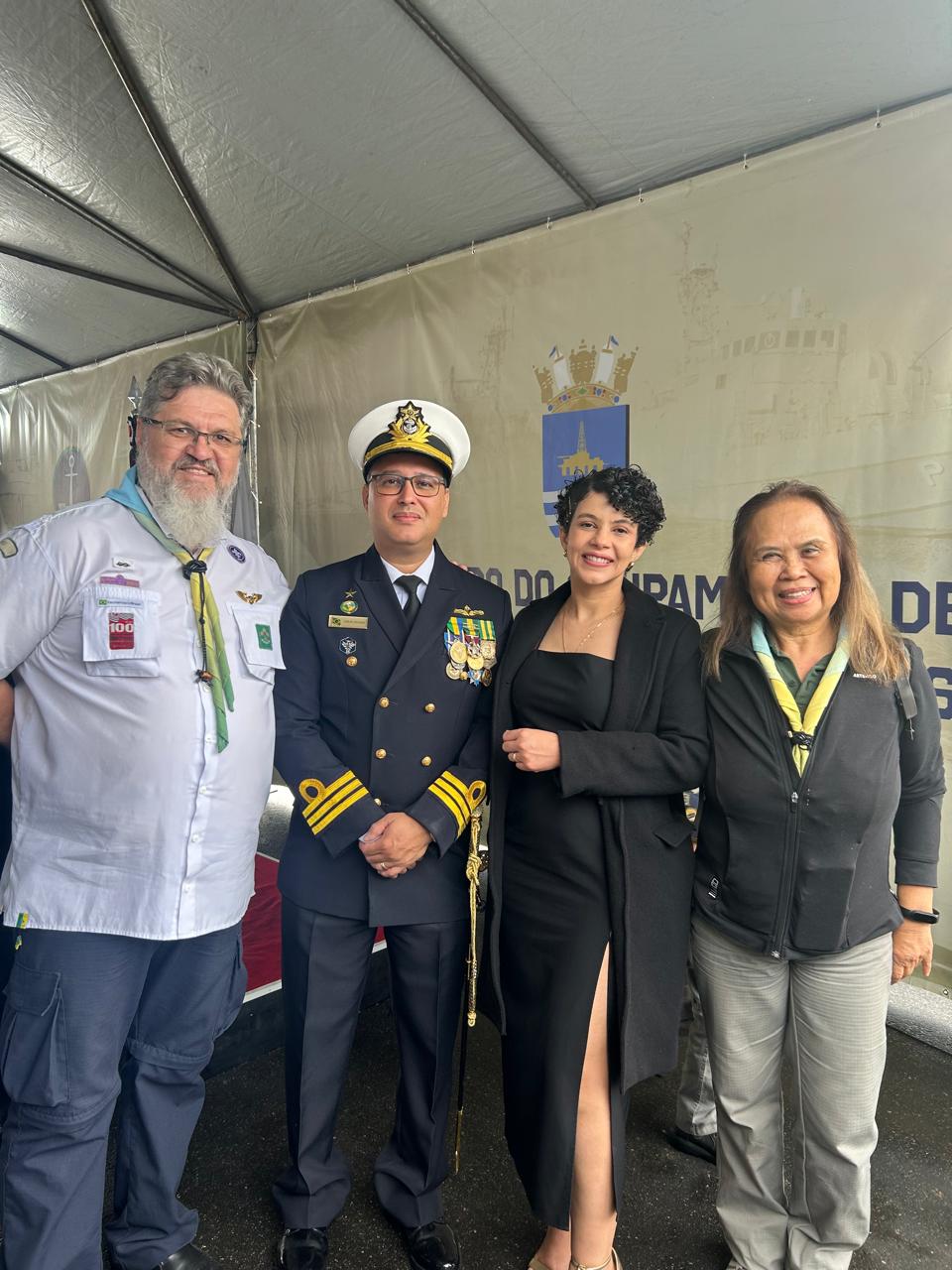 Realizado no cais da marinha no Porto de Santos, o evento reuniu diversas autoridades civis e militares, além de adultos e jovens do Movimento Escoteiro. Entre os convidados, destacou-se a presença do Vice-Almirante Marco Antônio Ismael Trovão de Oliveira, Comandante do 8º Distrito Naval da Marinha do Brasil, com sede em São Paulo, reforçando a relevância do Grupamento para a segurança e fiscalização marítima na região.