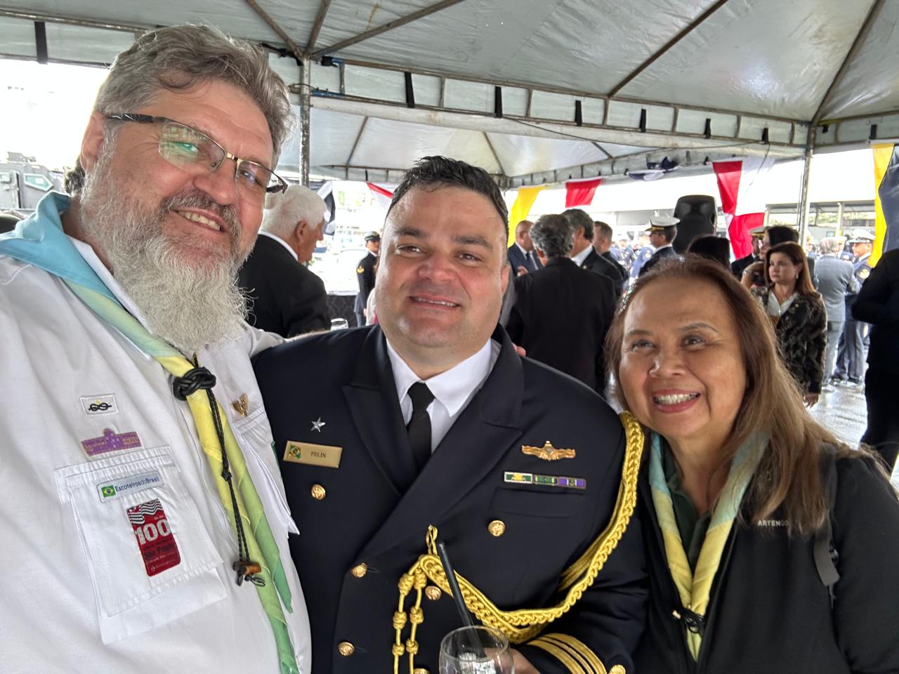 A solenidade foi uma oportunidade para a Região São Paulo reiterar a importância da parceria com a Marinha do Brasil, estreitar os laços com o novo comandante e dar um aperto de canhota no antigo, que em um discurso emocionante, comunicou-se como um verdadeiro escoteiro. Depois de agradecer às autoridades civis e militares, sua equipe, sua esposa e filho, que é Lobinho do 55º Grupo Escoteiro do Mar Morvan Dias Figueiredo, o Capitão Carlos Eduardo completou: “Não é mais que um até logo, não é mais que um breve adeus, bem cedo junto ao fogo, tornaremos a nos ver”, em alusão à nossa famosa Canção da Despedida.