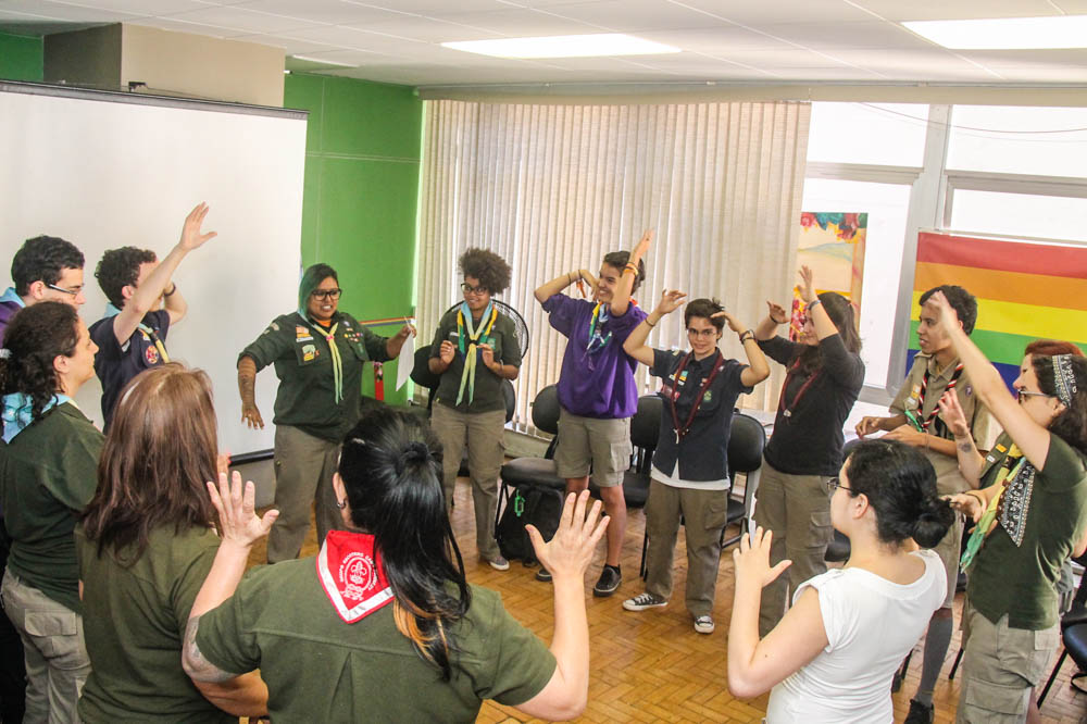 No sábado dia 26 de agosto aconteceu o “Pensando Diversidades”, organizado pelo Núcleo Regional de Jovens Líderes em apoio do Centro de Cidadania LGBT – Arouche. A atividade foi facilitada pela Coordenação do Grupo de Trabalho da Cartilha Diversidades, elaborada por pioneiros, dirigentes e escotistas voluntários dos Ramos Lobinho, Escoteiro, Sênior e Pioneiro, e proporcionou a experimentação de suas atividades.