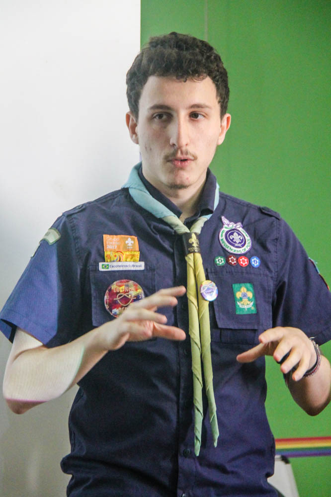 Uma breve discussão sobre “o que te estimulou a vir hoje?” fez com que as pessoas dessem exemplos e experiências vividas sobre casos onde houve negligência ou discriminação de pautas sobre diversidade nos grupos escoteiros e demais âmbitos da sociedade. Dois vídeos foram exibidos para introduzir os assuntos a serem abordados.