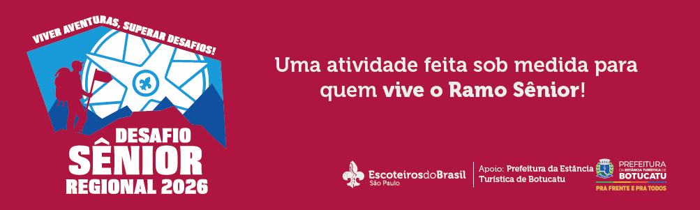- Equipe de Serviço: maiores de 18 anos, com Registro Escoteiro válido, atuando nas áreas de Programa, Logística, Infraestrutura, Atendimento Médico e Segurança.