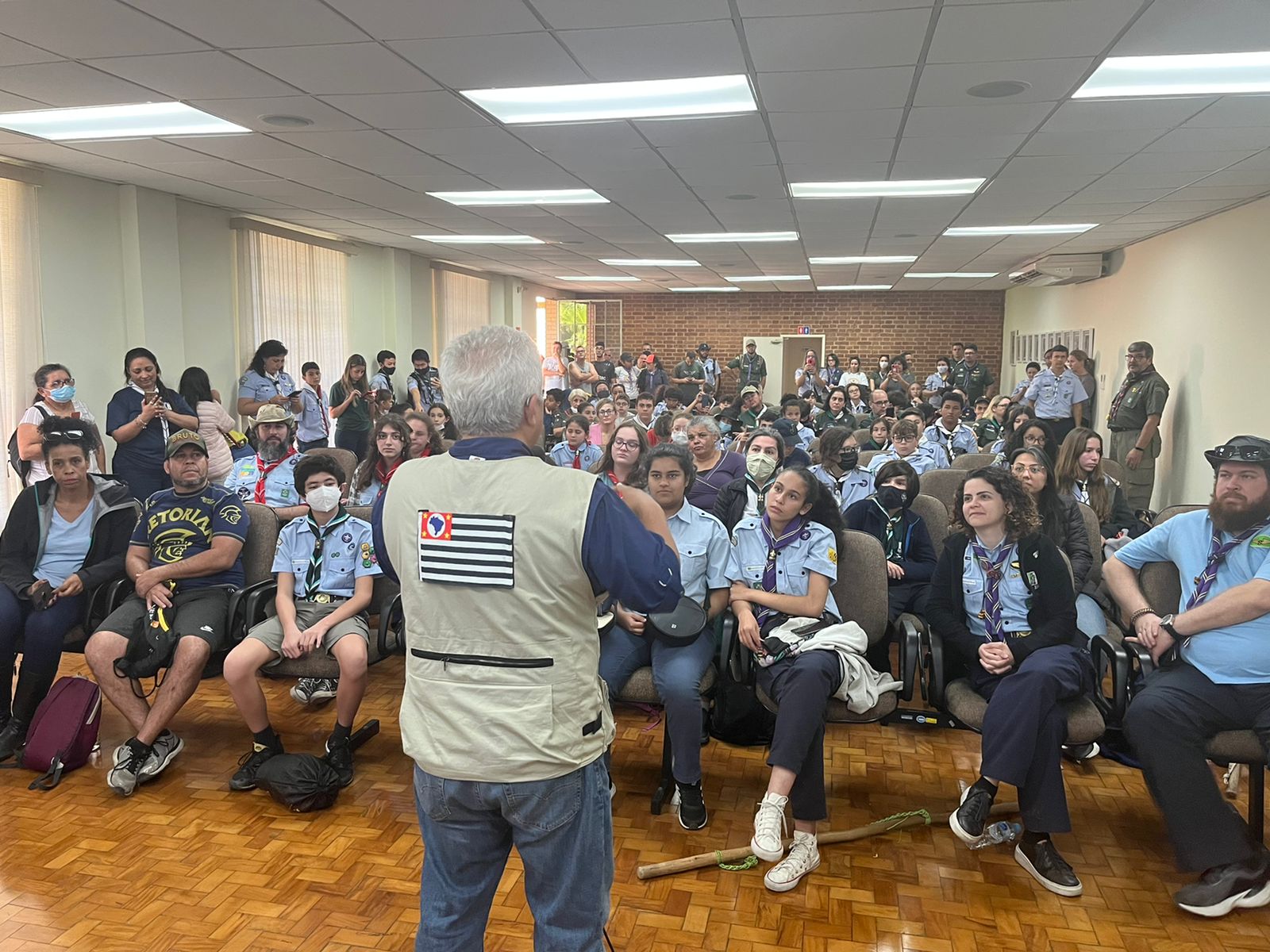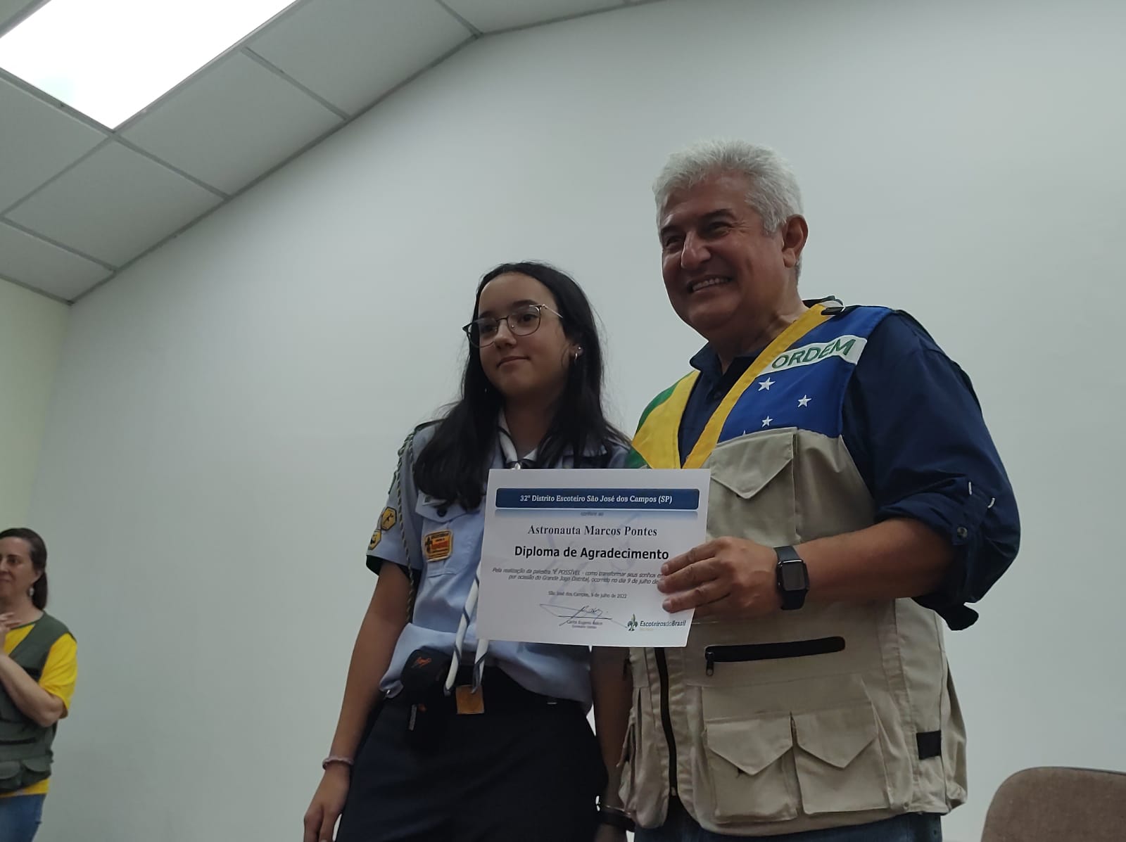 No início da tarde, jovens e adultos puderam conhecer o astronauta e ex-ministro da Ciência, Tecnologia e Inovações, Marcos Pontes, que deu uma palestra no Auditório da Fundação Cultural Cassiano Ricardo, para todos, tirando dúvidas e curiosidades sobre a profissão, o treinamento para se tornar astronautas até os dias atuais, motivando todos a seguirem seus sonhos. Para ele conversar com os jovens é muito importante: “Toda vez que eu tenho oportunidade de conversar com os jovens eu tenho um prazer gigantesco com isso, na verdade, eu considero isso uma das atividades mais importantes que eu faço, mesmo quando eu estava como ministro, às vezes eu cancelava reuniões para poder falar com os jovens. Mas por que isso? Porque eles são o futuro, não adianta a gente fazer tudo se a gente não prestar atenção nos jovens, na educação, nas escolas, nos professores, porque isso é o caminho. Principalmente na educação básica. Você vê esse trabalho que é feito no escotismo de forma geral é muito importante também porque traz valores importantes para os jovens, cria senso de união, de liderança, trabalho em equipe, então tem muita coisa que eles trabalham aqui que levam para a vida inteira”.