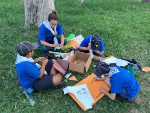 Ao longo do sábado, dia 11, as atividades se distribuíram em diferentes frentes. Na Escola Mariotto, no CTA, foram realizadas ações em comemoração ao aniversário da instituição, fortalecendo o vínculo do grupo com a comunidade local e ampliando a presença do escotismo em diferentes espaços.