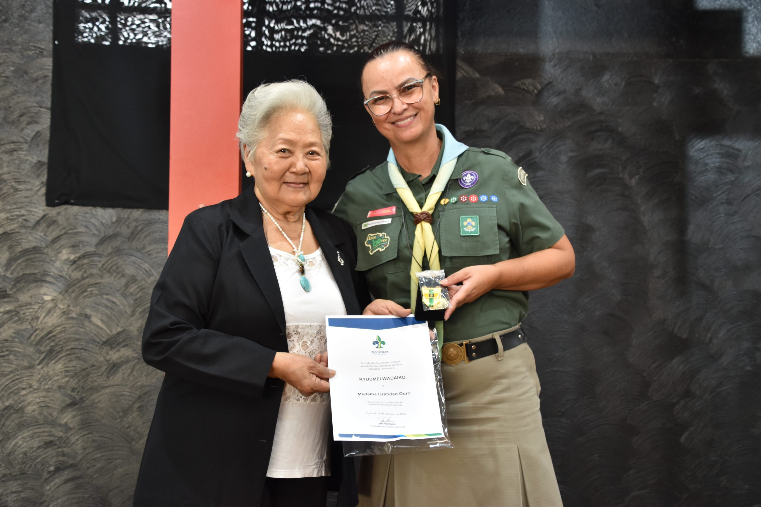 O Grupo de Taiko Ryuumei Wadaiko, da cidade de Araçatuba – SP, recebeu da Região Escoteira de São Paulo o Diploma de Mérito Regional e a Medalha de Gratidão Ouro dos Escoteiros do Brasil.