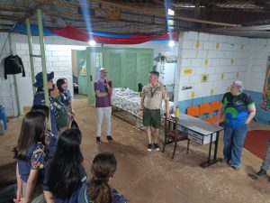 Durante a visita, os jovens participaram de um animado bate-papo com o convidado, compartilhando curiosidades sobre o Escotismo no Brasil e conhecendo mais sobre as tradições escoteiras dos Estados Unidos. A atividade foi um verdadeiro momento de integração, reforçando o caráter global do Movimento Escoteiro e seus laços de fraternidade entre povos.