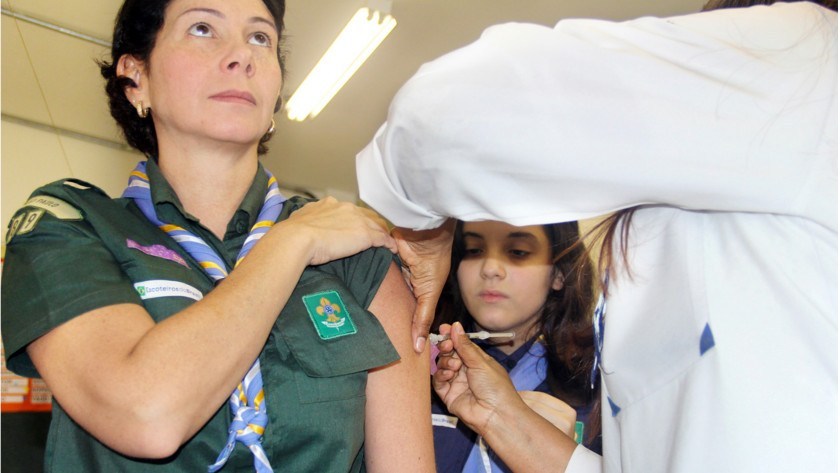 A primeira dose foi aplicada por Marina Nery, enfermeira e mãe dos escoteiros Ana Clara Moraes Nery e Antônio Moraes Nery. “As vacinas são essenciais para blindar o organismo contra doenças que ameaçam a saúde, em todas as idades”, lembra a enfermeira.