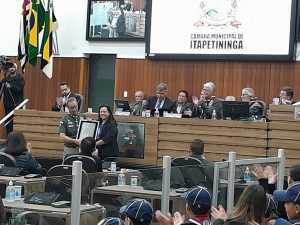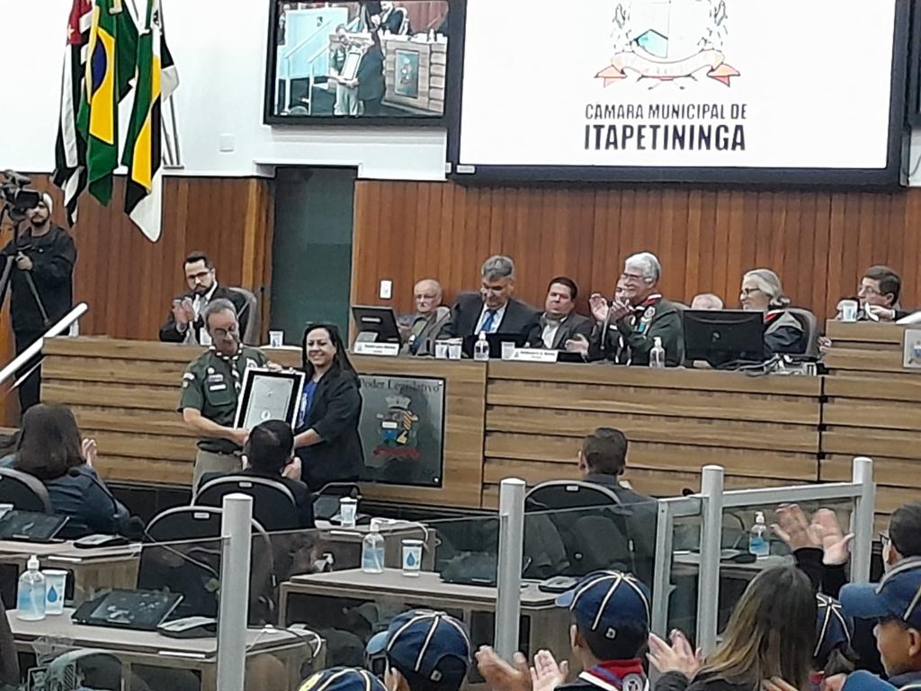 O 43ºSP/ G.E. Ibiraci, agradece à vereadora Marina Nalesso pela lembrança e pelo reconhecimento ao trabalho que o grupo desenvolve a 43 anos pela juventude.