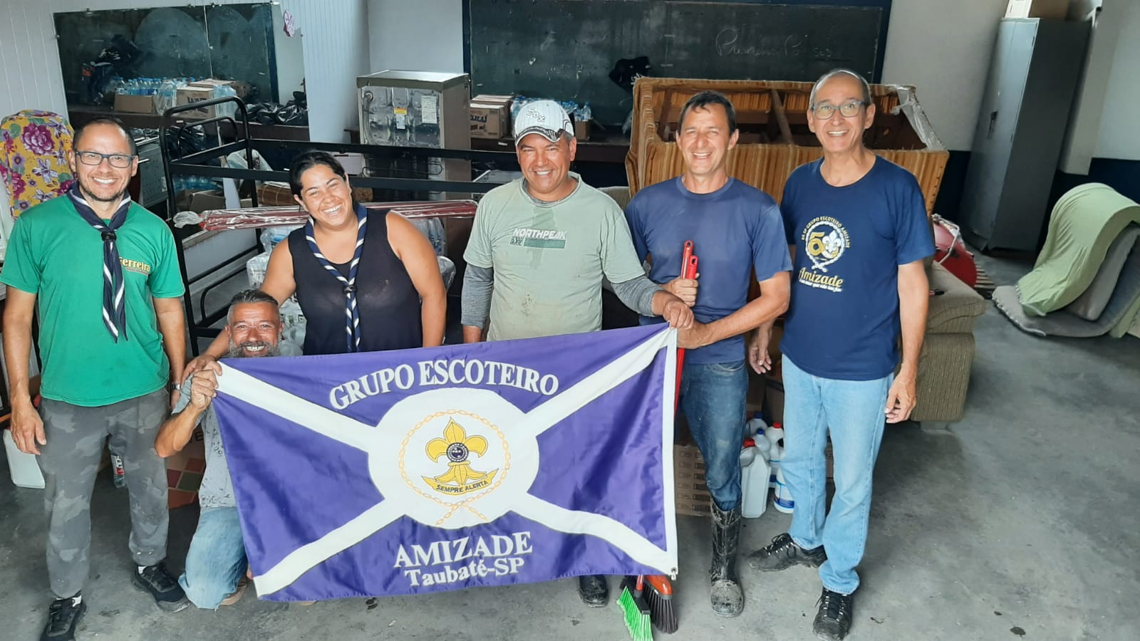 O Grupo Escoteiro do Mar Jair Mattemauer Silveira, de Guarujá, realizou no dia 22 de fevereiro uma ação com 30 voluntários para os desabrigados da cidade.