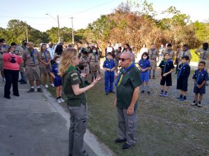 Padrinho do Guará Vermelho, o Grupo Escoteiro Acácia 388/SP, de Taboão da Serra, teve presença relevante na Cerimônia da Integração – conduzida pela sua Diretora de Métodos Educativos, Sheila Mochida – grande apoiadora da formação do novo grupo, que nasceu do sonho de um jovem escoteiro.