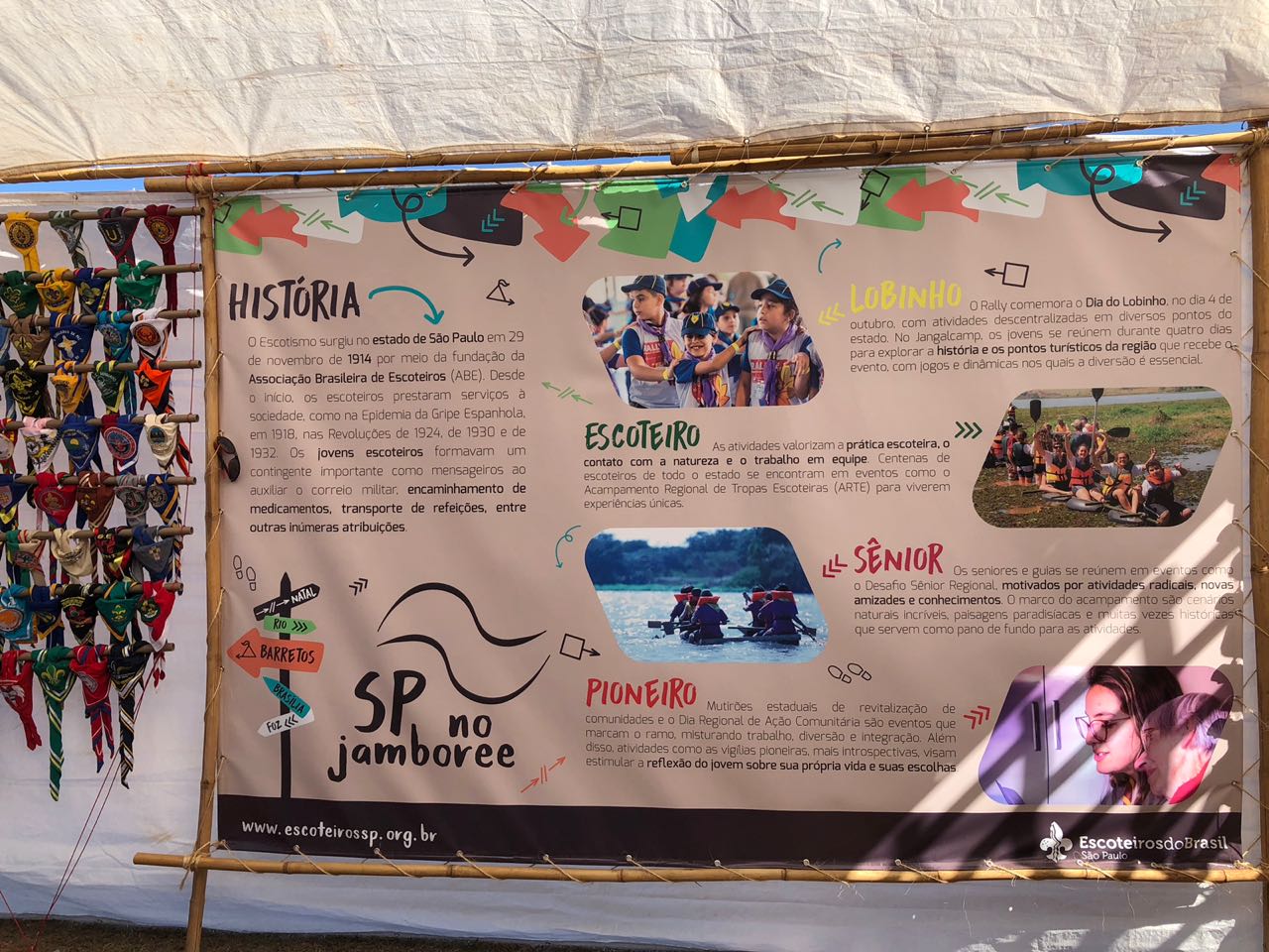 Além de todo apoio aos Escoteiros do Brasil para a organização do evento, São Paulo contou com um estande próprio no Centro Escoteiro. Nele jovens e adultos puderam conhecer mais sobre a região, as atividades regionais por ramo, os distritos escoteiros, e apreciar uma exposição com mais de 200 lenços escoteiros de Unidades Escoteiras Locais (UELs) do estado.