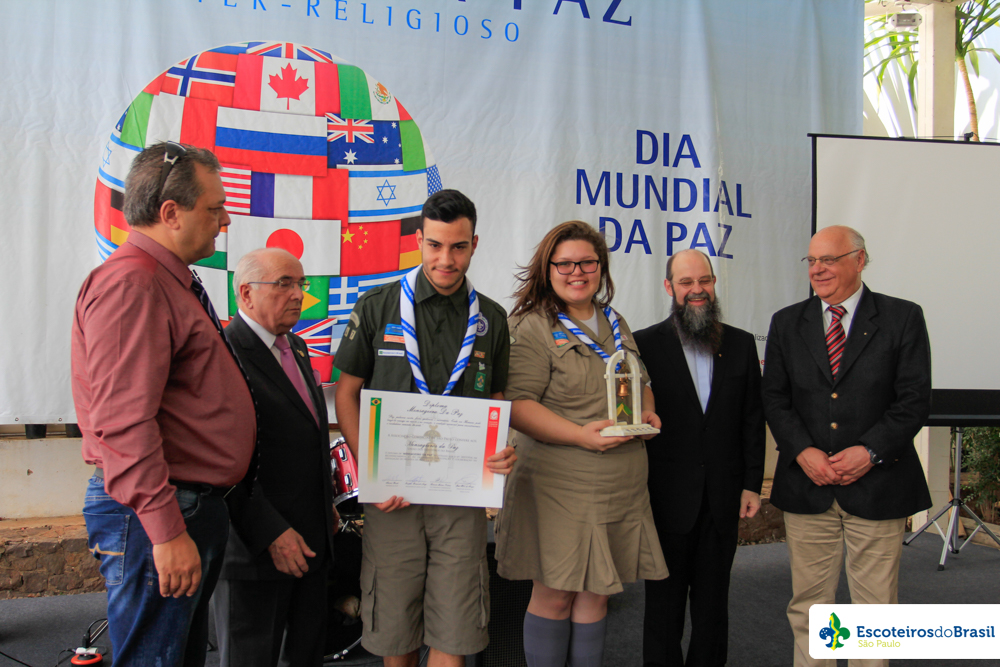 Em cerimônia ocorrida no dia 19 de setembro no Jardim Interno do Páteo do Collegio, representados pelos jovens Renata Andrade e Guilherme Paleari, os Mensageiros da Paz dos Escoteiros do Brasil foram homenageados com o Marco da Paz, devido sua atuação como propagadores da paz através de projetos e ações liderados por jovens escoteiros, que identificam problemas e atuam em prol da sua comunidade local.