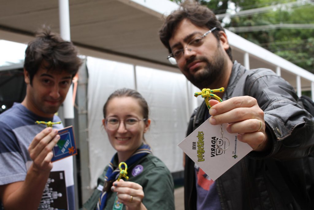 Para deixar a experiência mais interativa, os visitantes da Virada eram convidados a aprender nós escoteiros, como foi feito na Adventure Sports Fair, em especial o nó direito e o nó da amizade. Os nós feitos eram presos em chaveiros com um pingente que servia como lembrança do estande. Até o ator Fernando Caruso levou para casa um nó feito por ele mesmo. Confira nos stories da Devir!