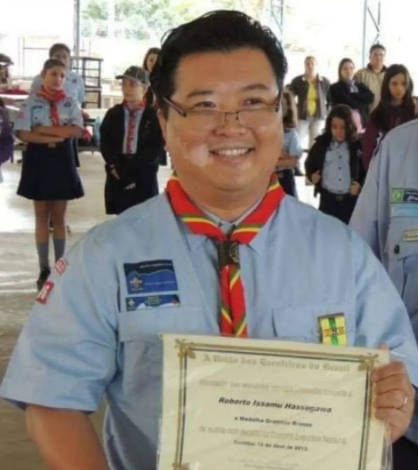 Membro do Grupo Escoteiro Dom Bosco 206/SP de Araçatuba, Roberto Hassegawa, foi escoteiro, sênior (primeiro Escoteiro da Pátria do GE), pioneiro e escotista.