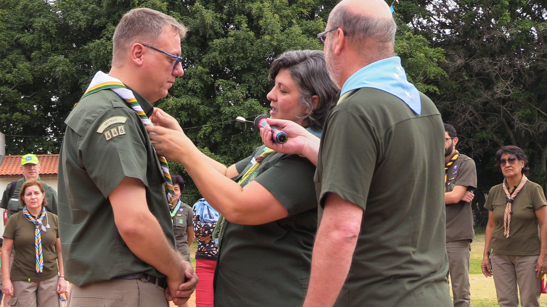 Durante a cerimônia, o presidente da Associação Okinawa Kenjikai do Brasil, Eiki Shimabukuro, pronunciou sua alegria em ter uma unidade escoteira local em seu espaço e falou sobre como o Escotismo é importante na formação das crianças de hoje. Depois, houve a apresentação de um grupo de Taiko e um workshop de Karatê, que traduzem um pouco das peculiaridades da cultura de Okinawa.