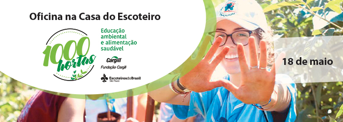 Você sabia que a Região Escoteira de São Paulo tem um novo projeto para trabalhar os conceitos de produção correta dos alimentos, preparo sem desperdícios e a alimentação balanceada e nutritiva? O 1.000 Hortas – Educação Ambiental e Alimentação Saudável é apoiado pela Fundação Cargill e vai ser desenvolvido ao longo de 2019 e 2020 com a comunidade escoteira e não escoteira.