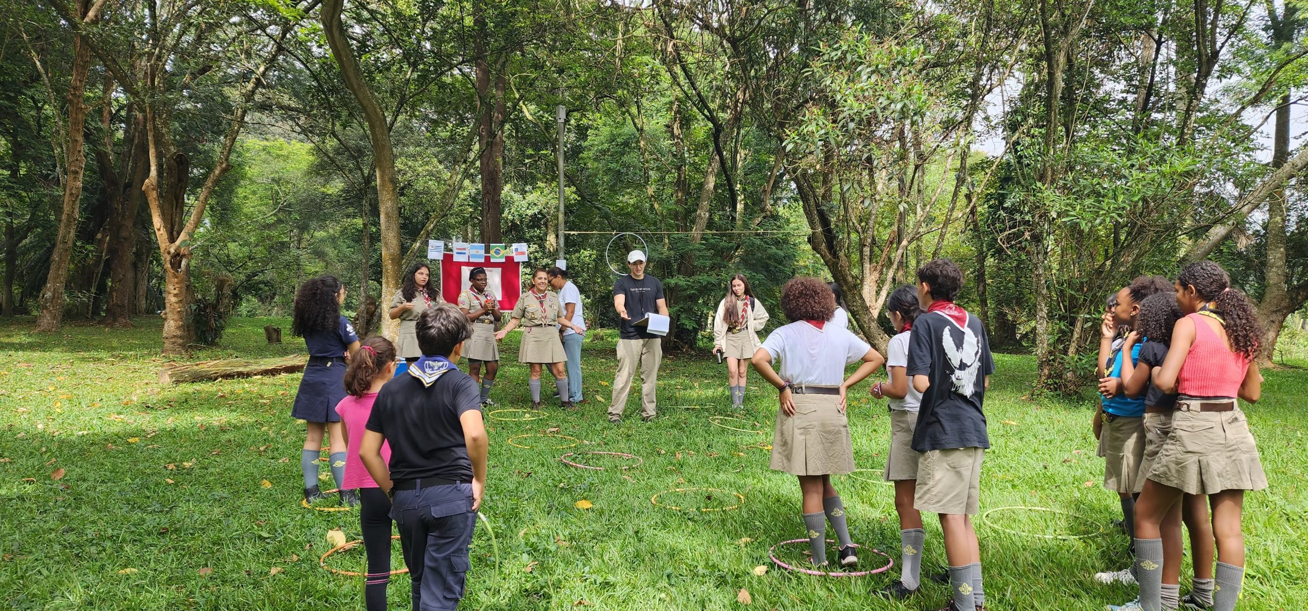 Na “Missão CONESUL: Comunicação sem Fronteiras”, a comunicação por rádio foi posta à prova. Separados por distância, os escoteiros precisavam transmitir informações sobre os países do Cone Sul apenas por voz, usando o sistema fonético. Já na Base “Desafio Geográfico do Cone Sul”, a agilidade e o conhecimento se encontraram: para avançar no percurso de bambolês, cada participante precisava acertar questões sobre a geografia da região e quem errasse levava uma refrescante canecada d’água!