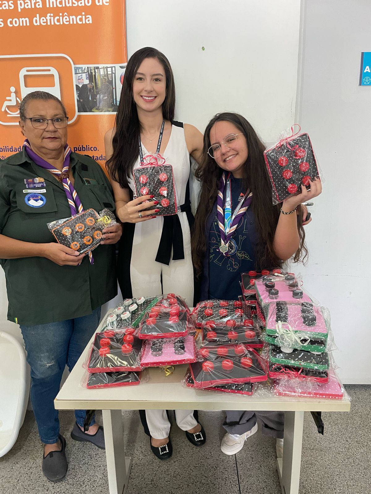 Durante a entrega das celas estavam presentes membros da subsecretaria de Guarulhos, o Comissário do 7º Distrito, Jurandir Vinco Isaac, escotistas do Grupo Escoteiro Gaia, os pais e o namorado da jovem.