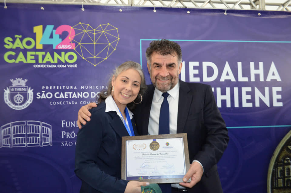A diretora-presidente do Grupo Escoteiro São Francisco de Assis 9/SP, Priscila Oriani de Carvalho, foi homenageada com a Medalha Di Thiene, a maior honraria concedida pela Prefeitura Municipal de São Caetano do Sul.