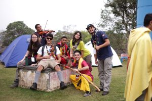 Mesmo com o frio típico do inverno paulistano, os pioneiros chegaram cedo ao local de acantonamento. Desde a entrada, já era possível sentir a imersão: elfos, gigantes, fadas e anões se misturavam entre bardos, magos, cavaleiros e sacerdotisas. Cada jovem interpretava seu próprio personagem, criado especialmente para viver o sistema de RPG desenvolvido para o evento — em que as escolhas, atitudes e ações influenciavam diretamente a narrativa da missão principal: encontrar a lendária espada Excalibur e restaurar o equilíbrio do mundo.