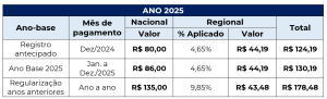 Segue abaixo a tabela de reajuste: