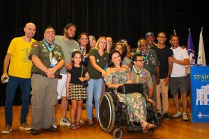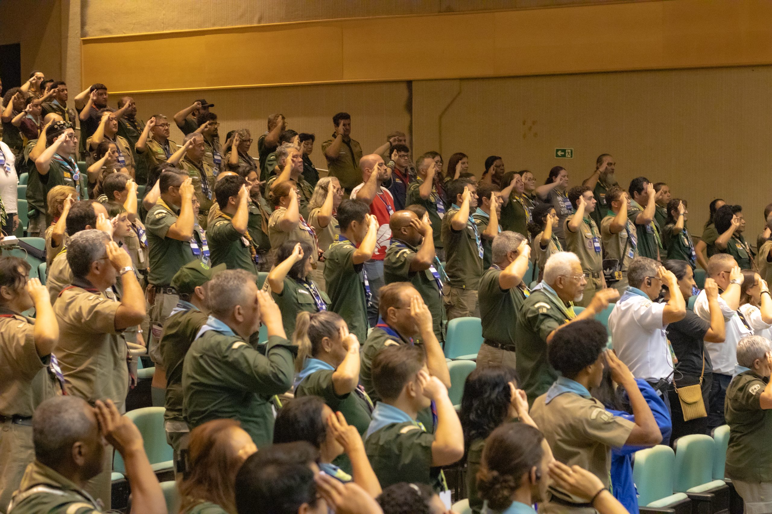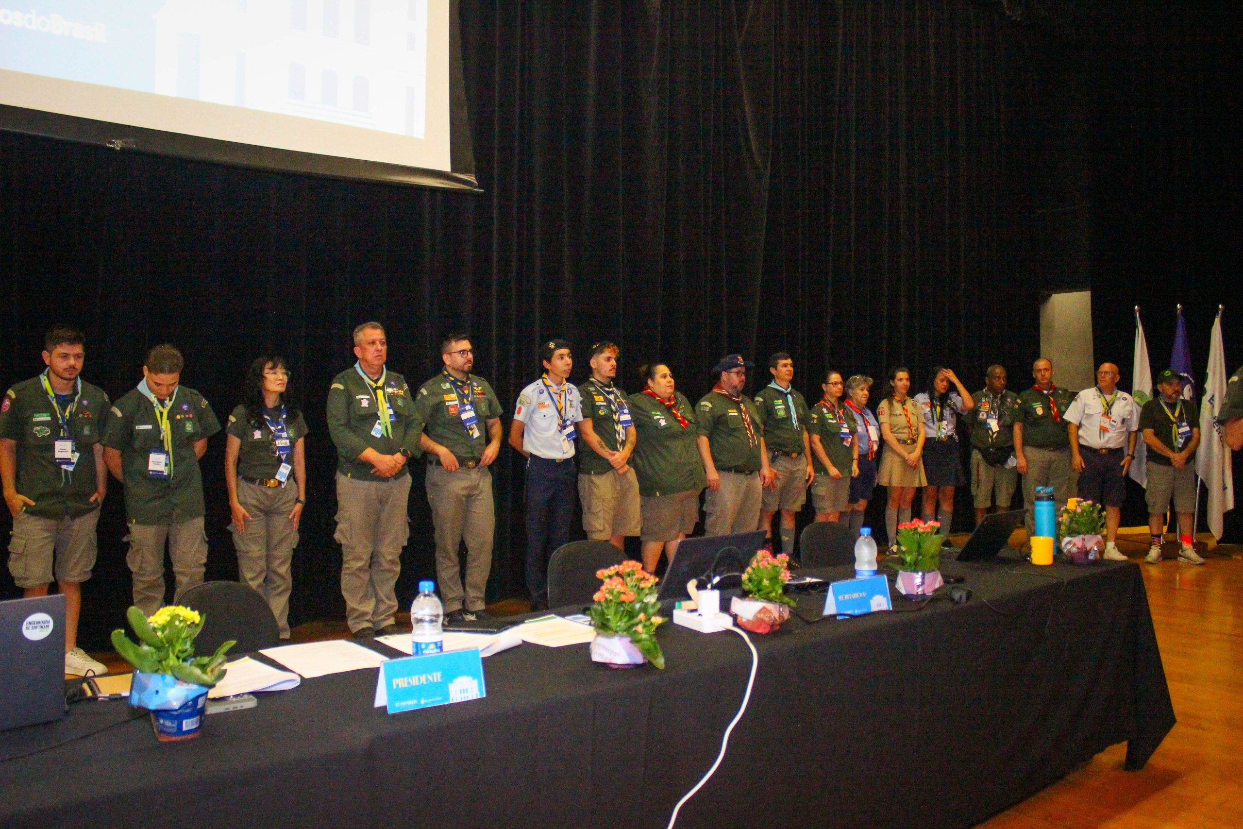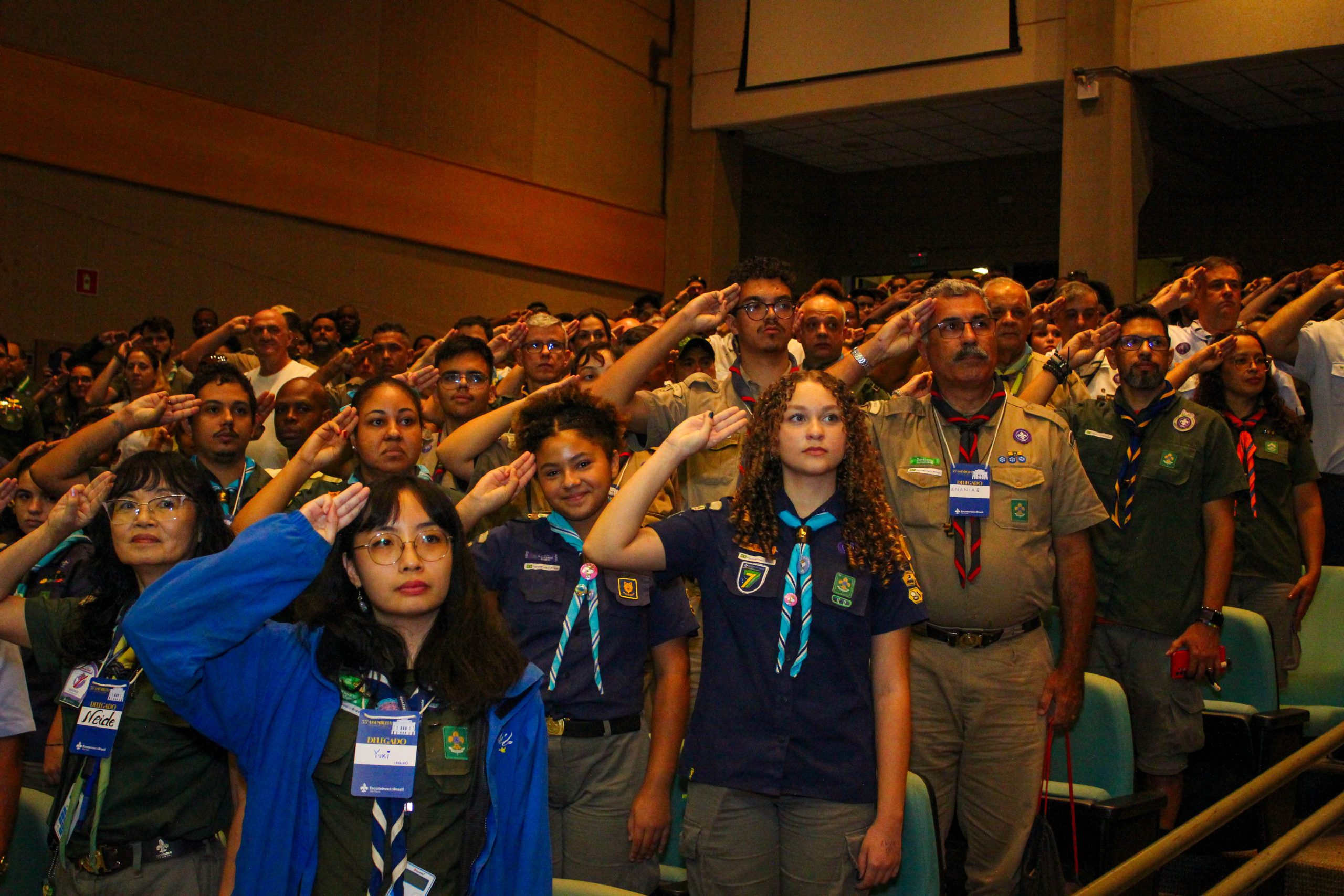 A Sessão Solene constituiu momento de especial relevância, ocasião em que foram outorgadas condecorações a membros que se destacaram por seus relevantes serviços prestados ao escotismo. Dentre os agraciados, destaca-se Gabriela Tofolo, escotista do Grupo Escoteiro Arara Azul, homenageada com a Medalha de Bons Serviços – 5 anos. Cumpre salientar que a referida homenagem ocorreu em consonância com o Dia Internacional da Síndrome de Down, circunstância que lhe confere especial significado, tendo em vista tratar-se de escotista com síndrome de Down, cuja trajetória representa, de forma exemplar, os valores de inclusão e diversidade promovidos pelo movimento.