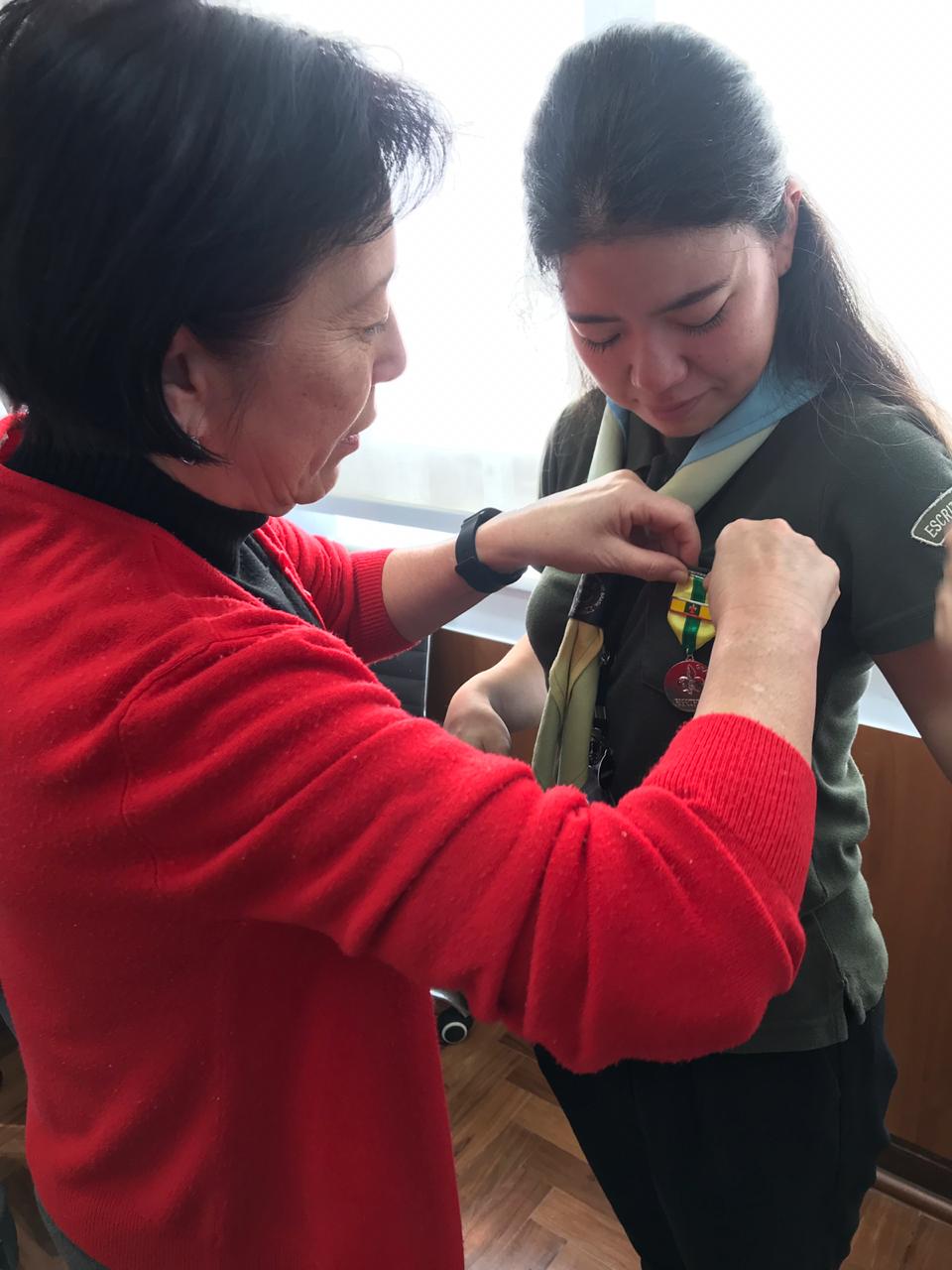 Após dois anos de trabalho na Região Escoteira de São Paulo, a voluntária japonesa Rie Yamamoto se despede do Brasil e retorna ao Japão com a experiência adquirida na bagagem e muitas histórias para contar. Hoje, 13 de junho, Rie realizou a apresentação de seu relatório final no Escritório Regional e recebeu a Medalha de Gratidão Grau Prata pelo destaque de sua atuação em apoio ao nível regional.